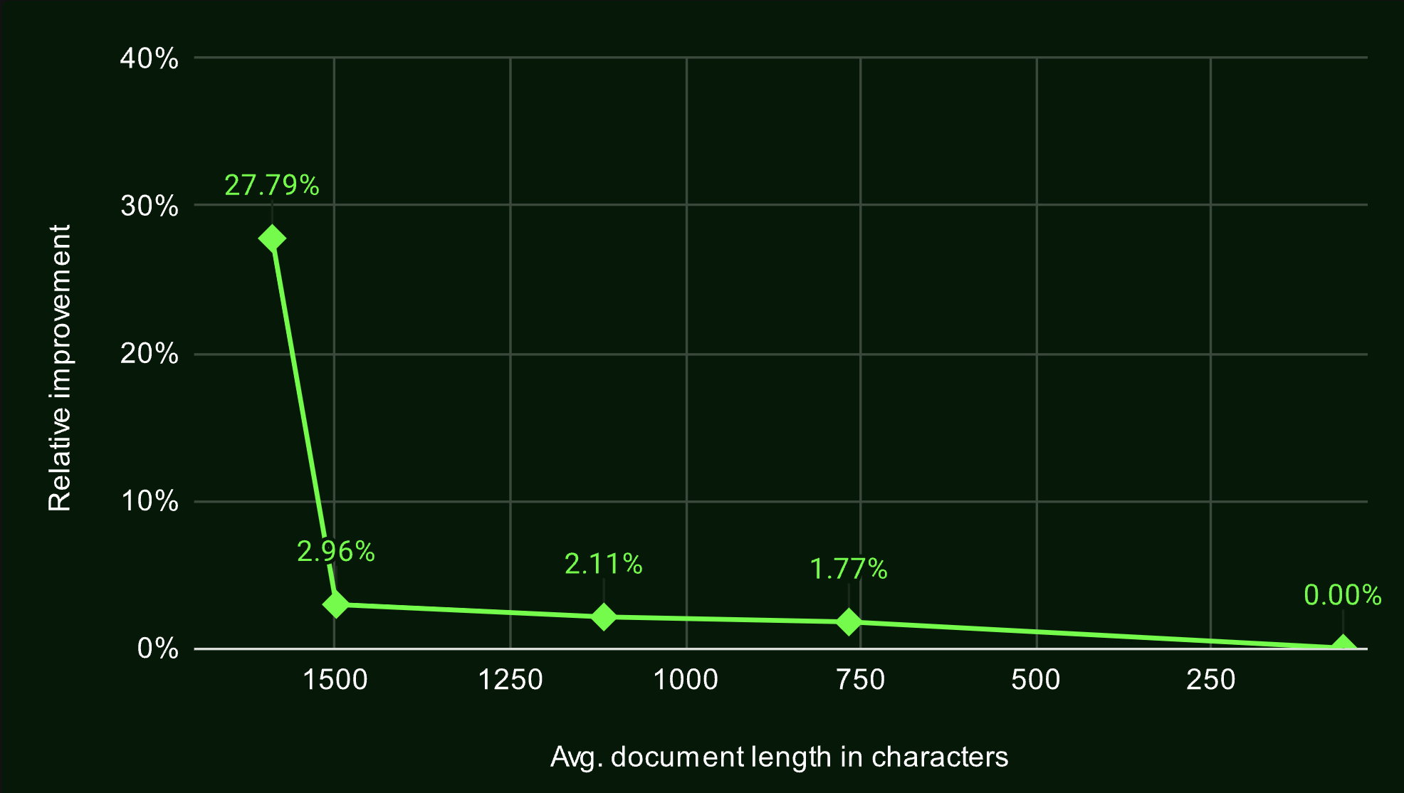 To evaluate the effectiveness of late chunking, they tested several retrieval tasks from the BeIR benchmark. In all cases, late chunking outperformed the naive approach, particularly for longer documents, where the performance gap between the two methods increased with document length. This demonstrates that late chunking becomes more effective as document length grows.